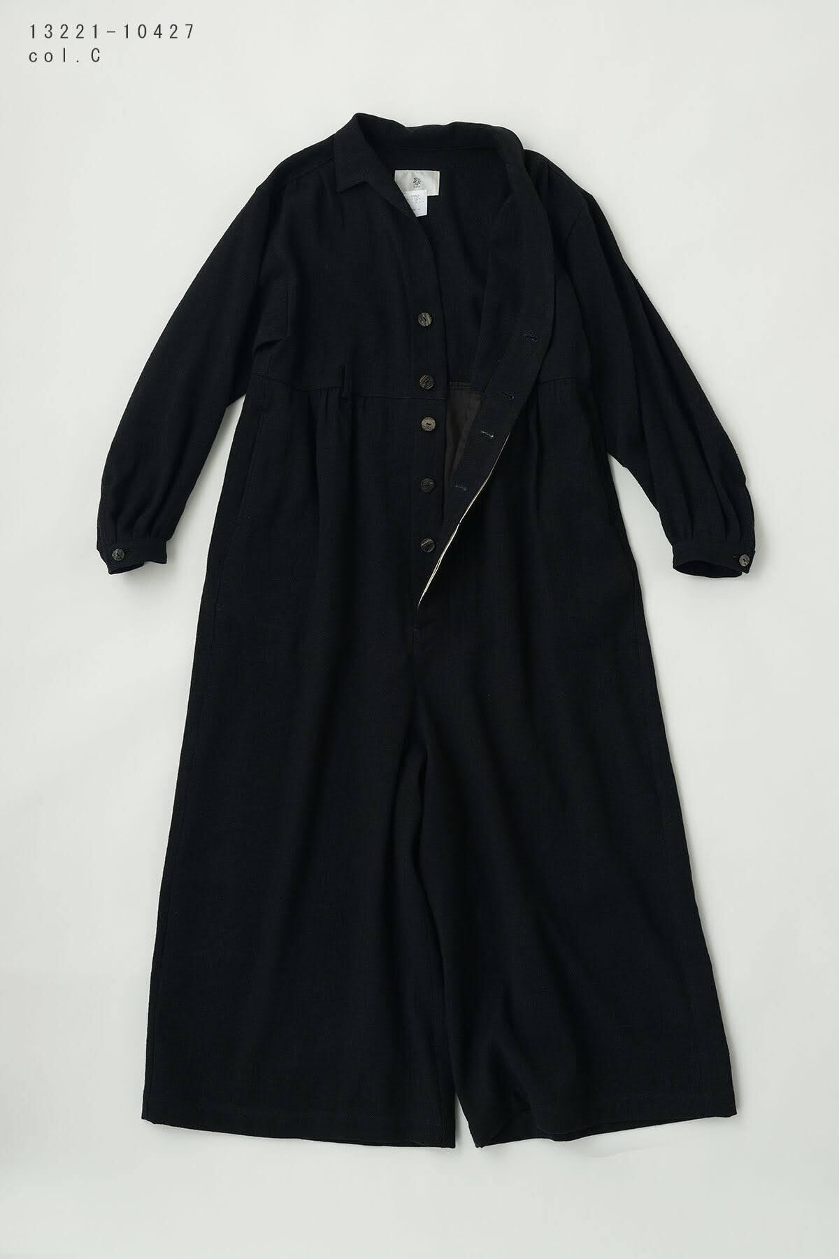 ハイウエストの切替とワイドなボトムのコンビネゾン。 Mサイズ length着丈/130CM wichh(flat) 身巾/55CM BC sleeve length 裄丈/78CM