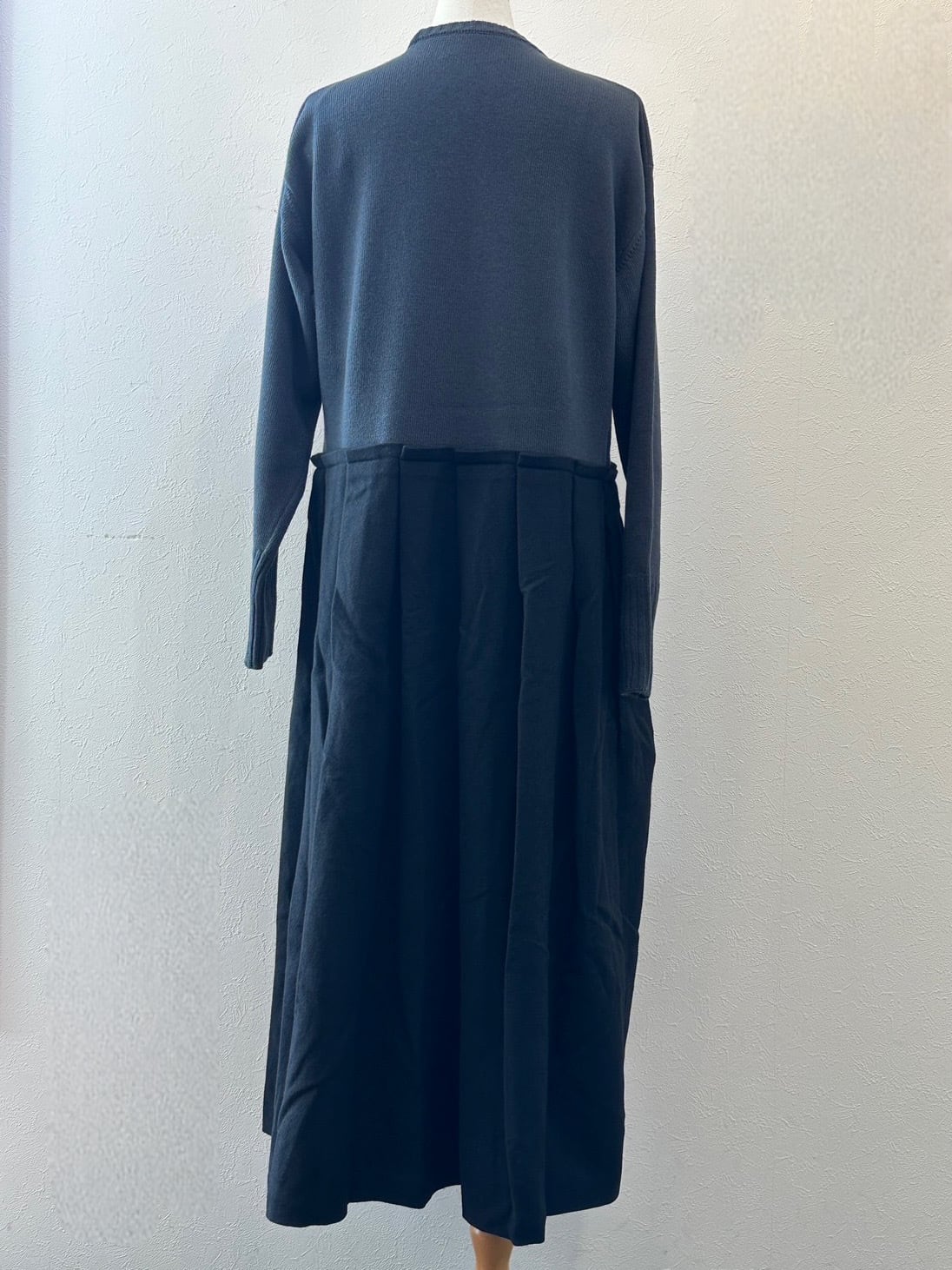 上身頃ががニット。スカート部分はウールコットンのツイル素材。右側にポケットが一つ。裏地なし。