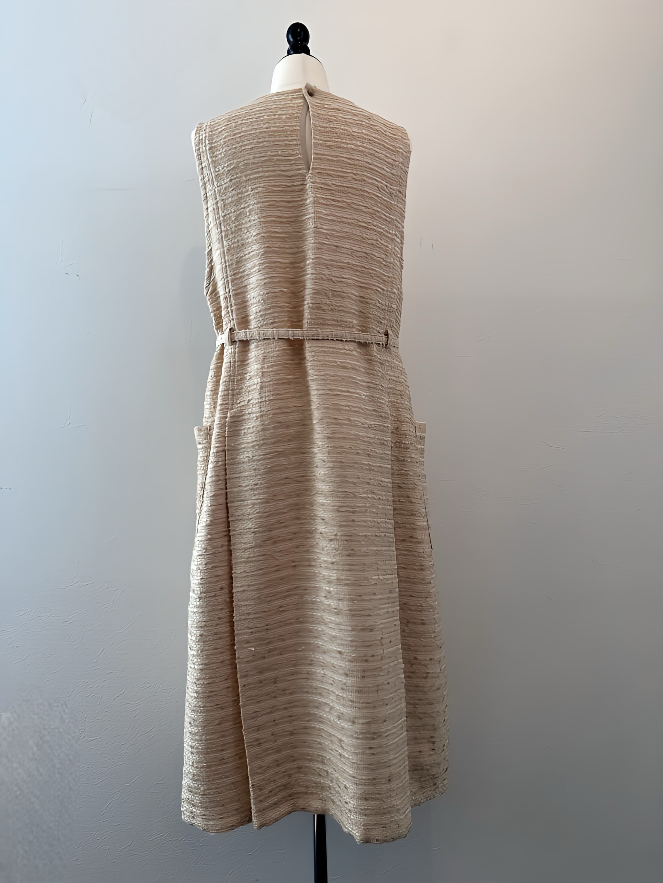 2023年秋冬に作った、サーカス団員をイメージしたかたち。 着丈 113cm 肩幅 34cm バスト 98.5cm 素材 cotton 57% rayon 17% acrylic 17% polyester 5% nylon 4% ※素材の特性上、ネップやシワ、スレやシワが入ります ※素材の特性上、着用やクリーニングなどによる収縮や白化があります