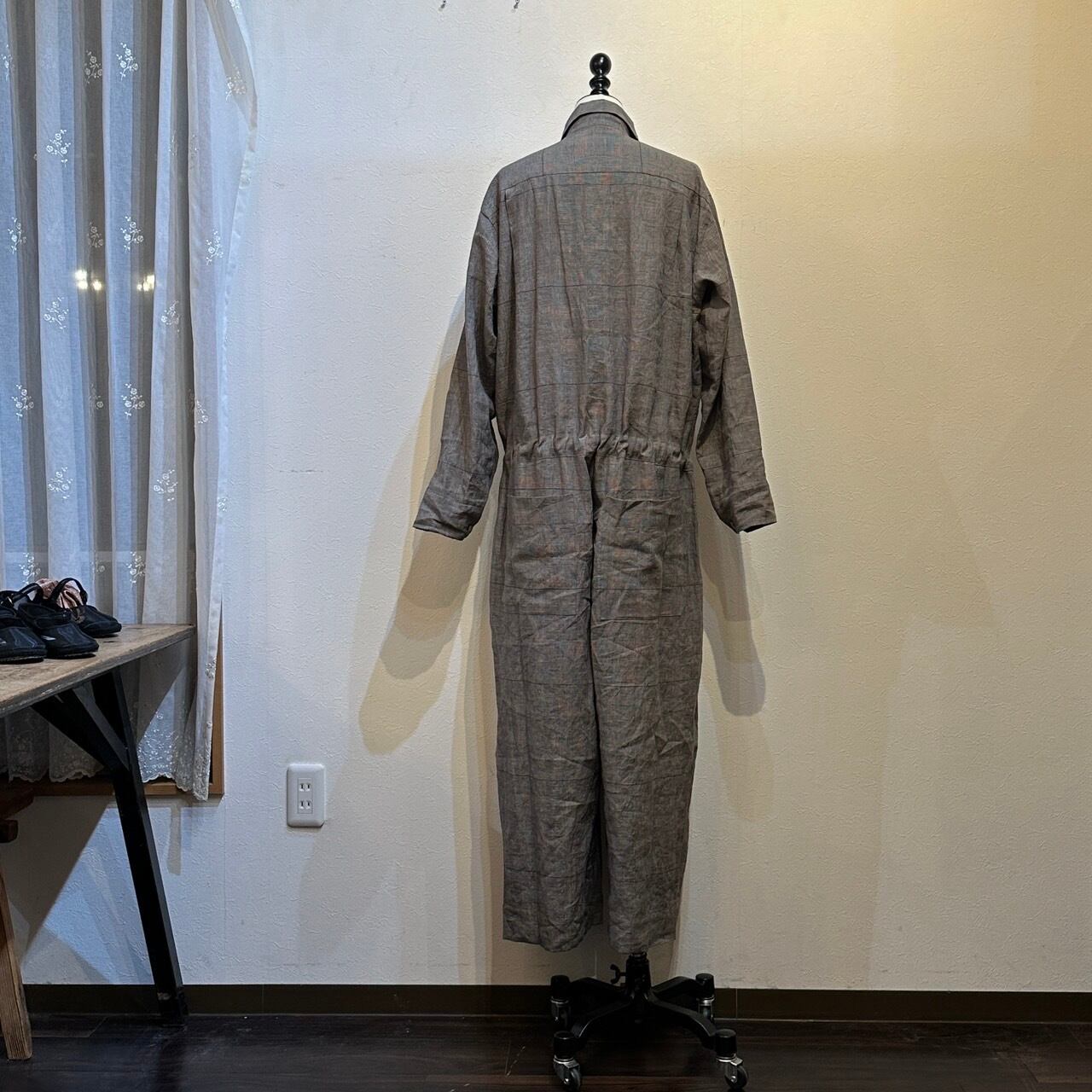 オリジナルのグレンチェック生地を使用したオールインワン。